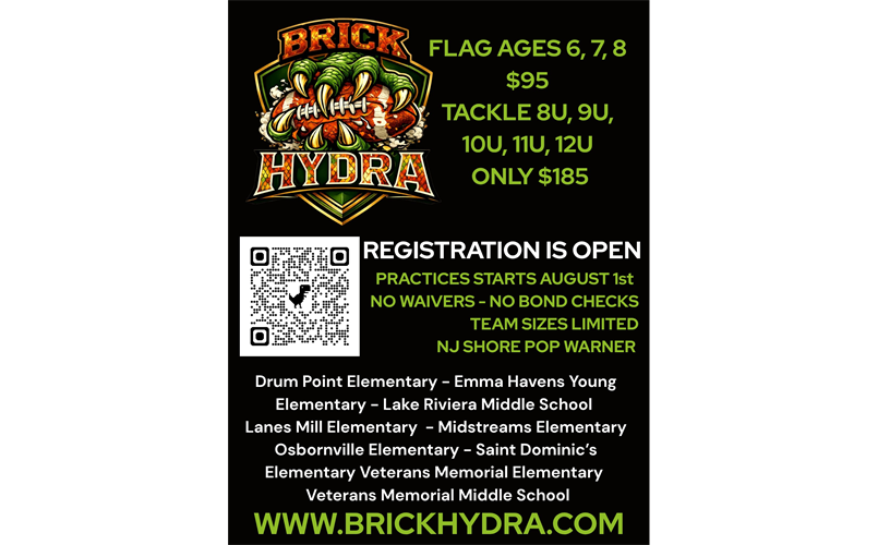 NJ Shore Pop Warner is returning to Brick Township for the 2026 season. Pop Warner has a long standing charter in town and will be represented by a new team - BRICK HYDRA